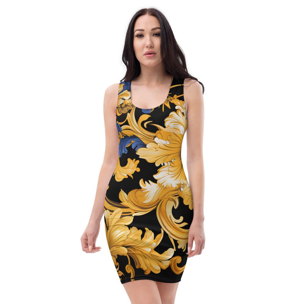 全面プリントのぴったりフィットのワンピースで大胆な着こなしを楽しみましょう。