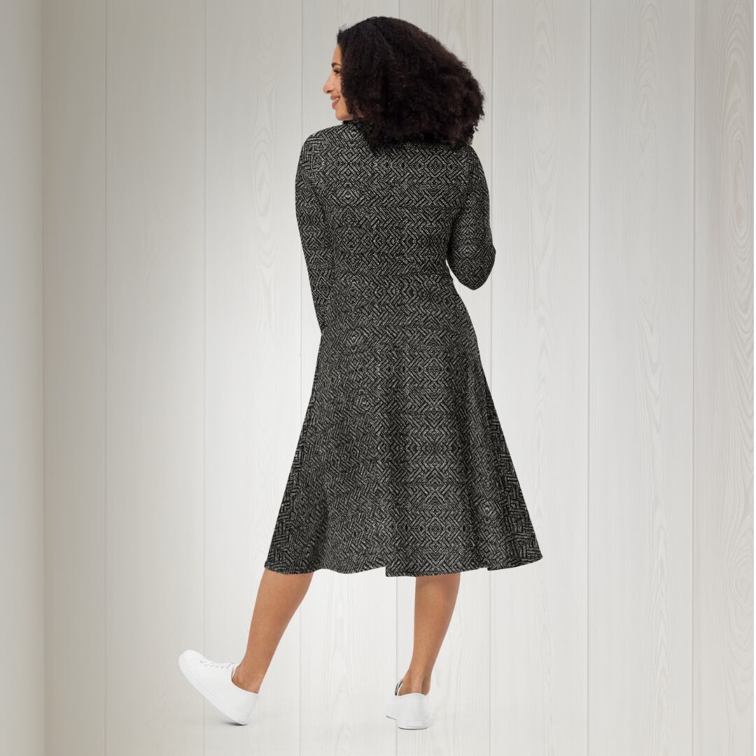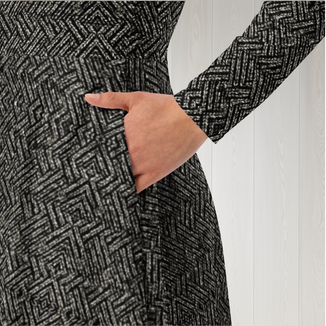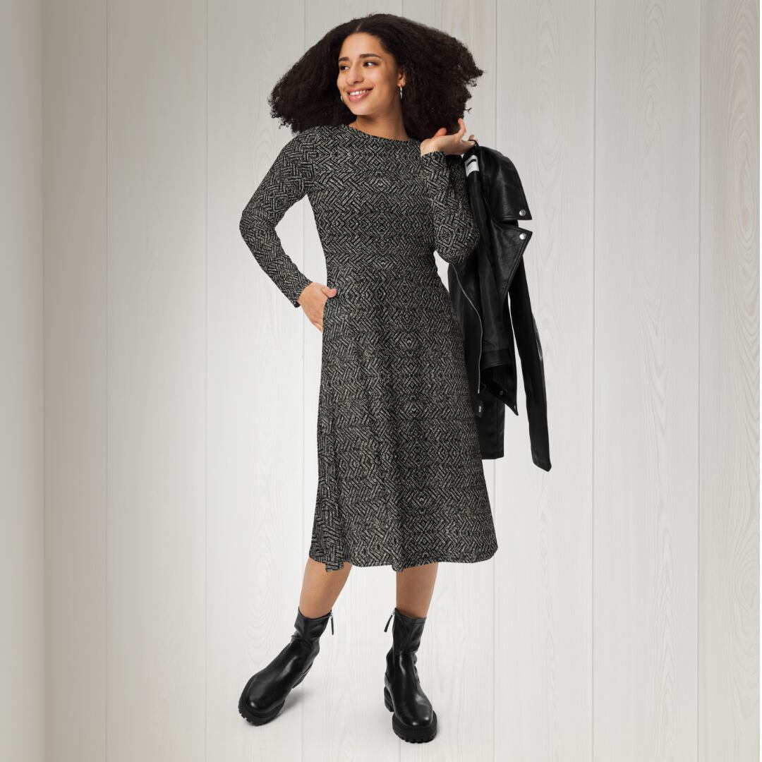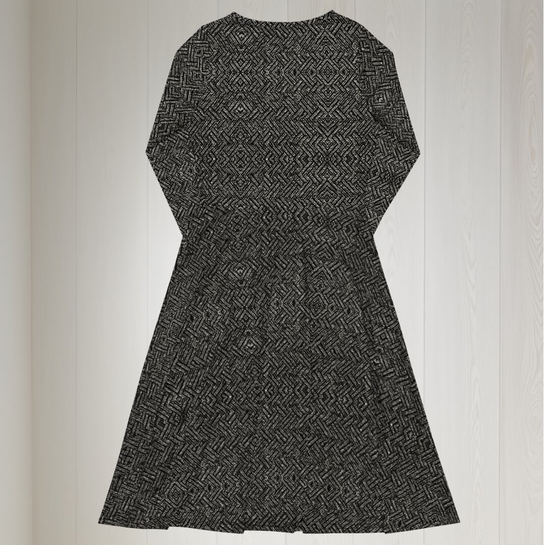 ツイードプリント長袖ミドルワンピース