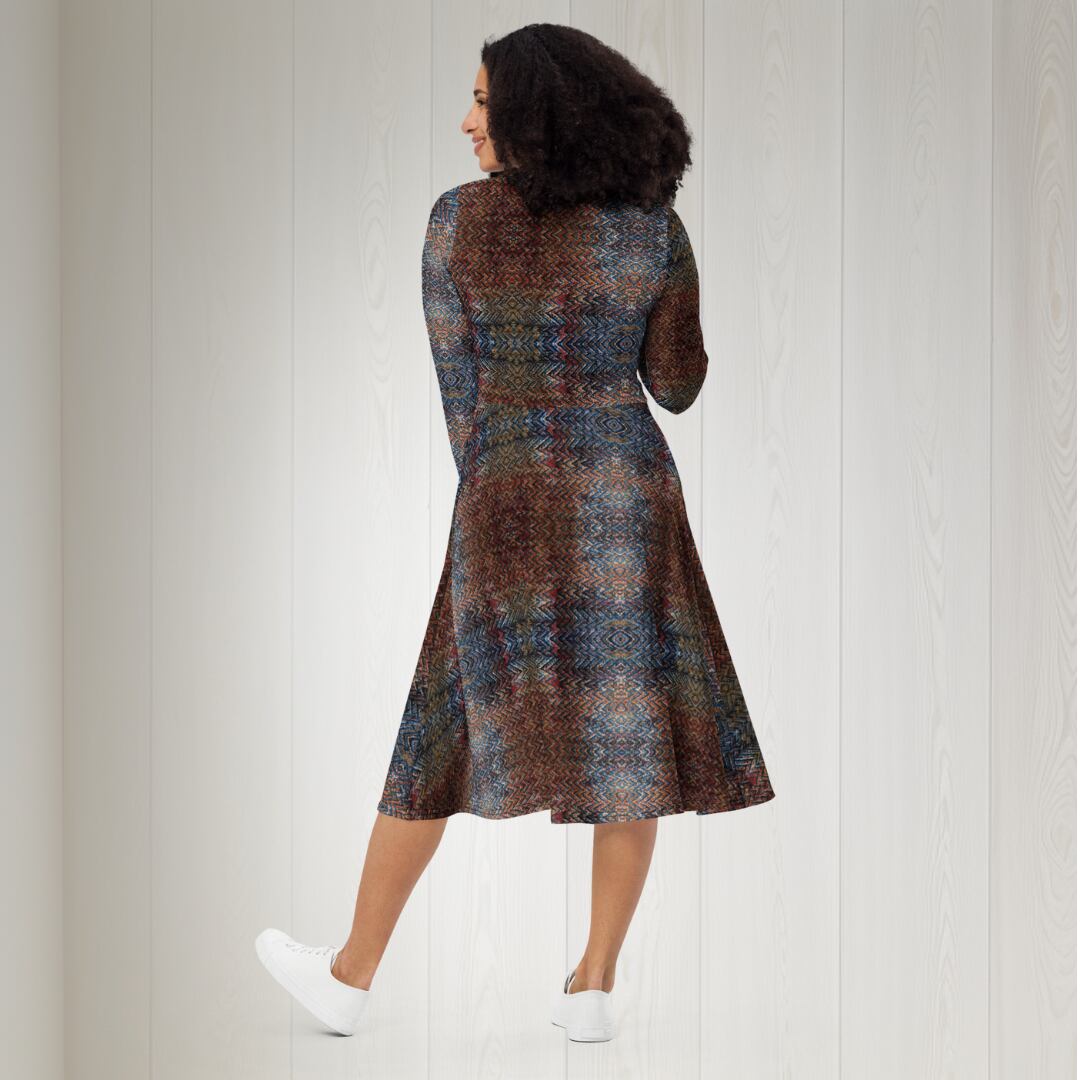 ツイードプリント長袖ミドルワンピース