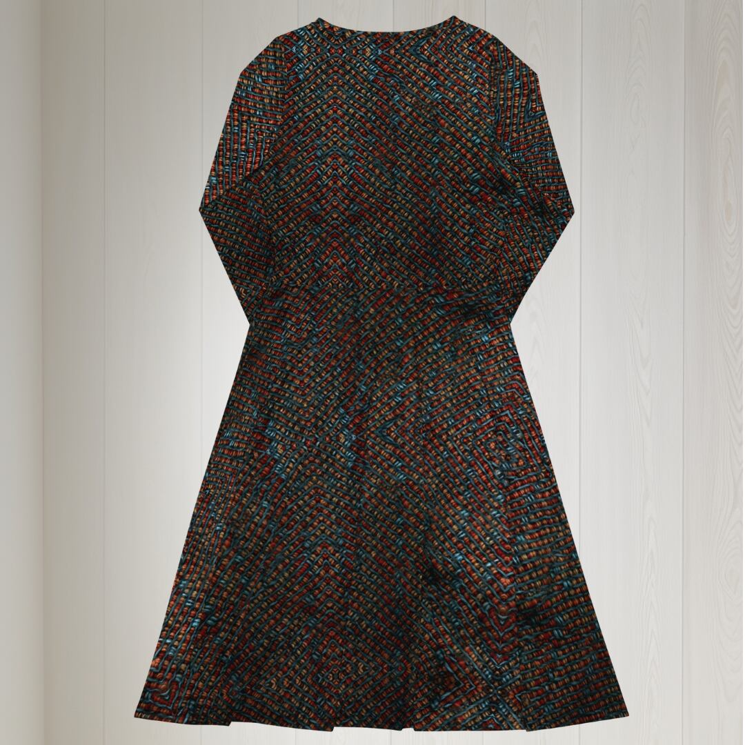 Tweed print long sleeve mid-length dress/ツイードプリント長袖ミドルワンピース