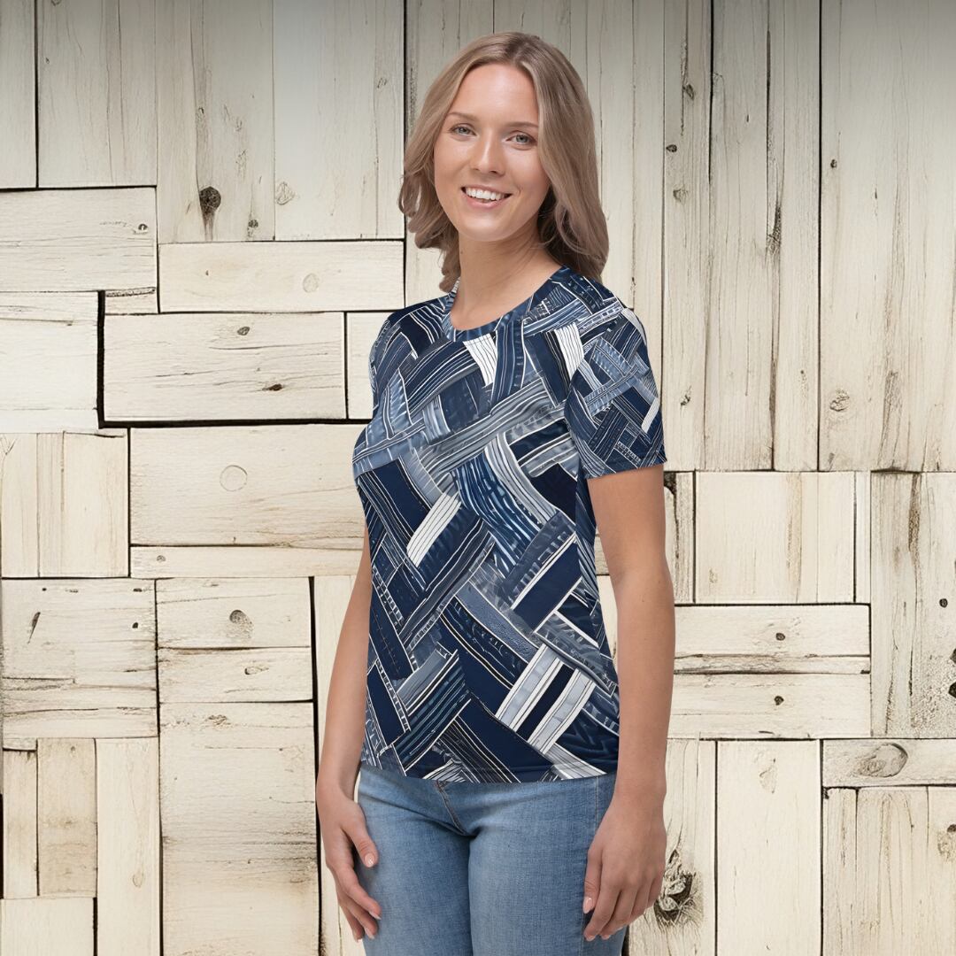 denim patchwork print T-shirt/デニムパッチワークプリントTシャツ